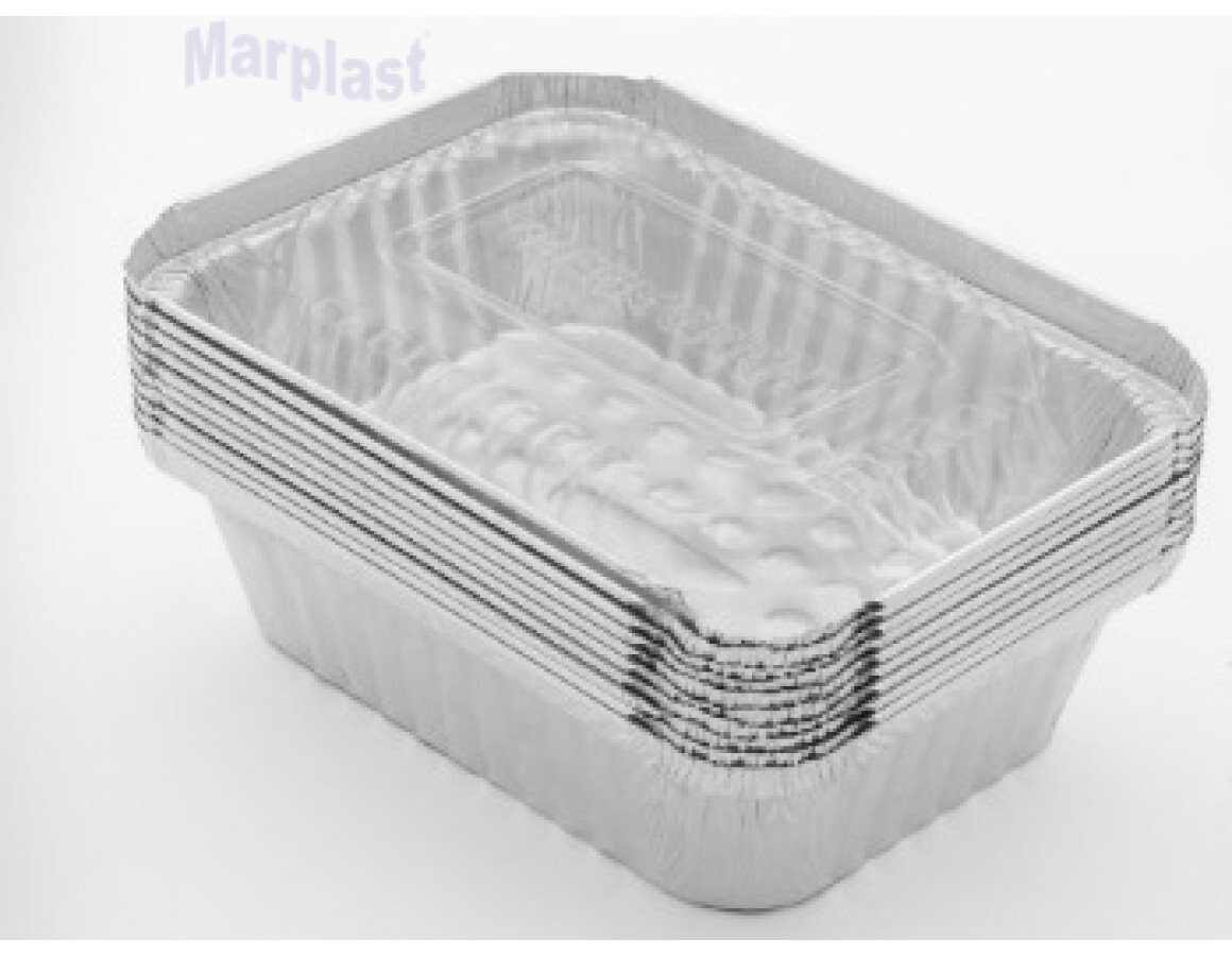 Bandeja Retangular de Alumínio com tampa PET 5000ml c/10. Usado para o armazenamento e transporte de alimentos, podendo ser levado ao freezer, ao forno convencional.