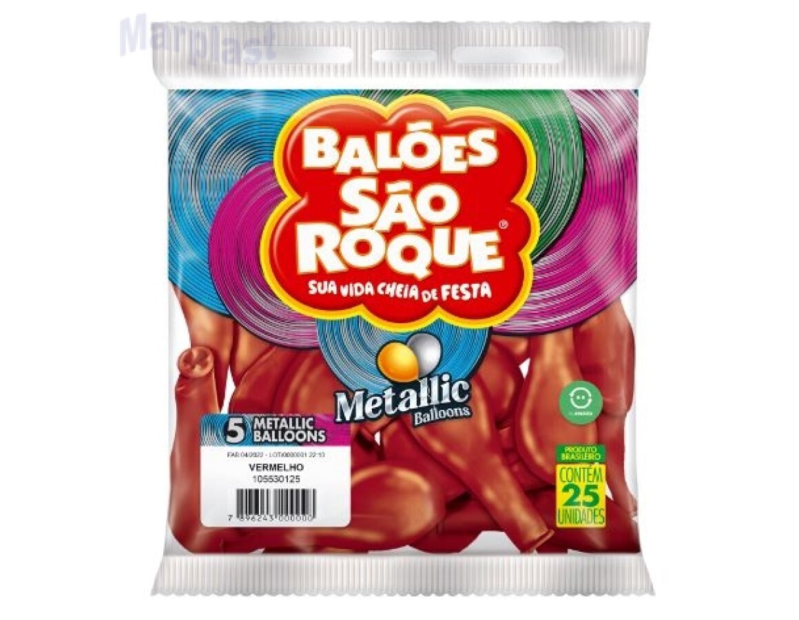 BALÃO SÃO ROQUE - TAMANHO 5 - C/25 UNIDADES - METALIC VERMELHO