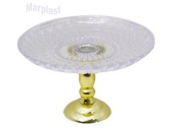 Bandeja de acrilico lapidada dourado metalizado, ideal para decorar seu evento, festa, batizado, valorizando seus pratos e doces. Prato em acrílico lapidado, e base em plástico com pintura metalizada na cor dourada.