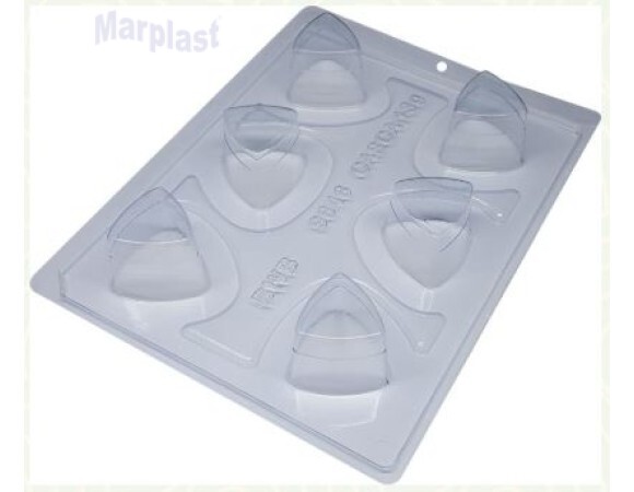 Forma especial com silicone (3 partes), ideal para produção de chocolates com muito mais praticidade e precisão. Possui uma “marquinha” indicando a quantidade necessária de chocolate, levando para geladeira uma única vez. Ela proporciona uma casca uniforme e um acabamento perfeito sempre com o mesmo peso.
