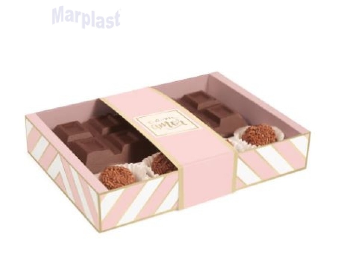 CAIXA TABLETE CHEVRON ROSA - Ideal para deixar seus produtos ainda mais lindos e charmosos, também muito utilizados para presentear como lembrancinhas em festas e eventos.