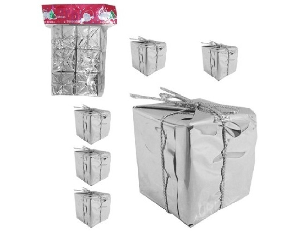 NATAL ENFEITE CAIXINHA PRESENTE PRATA C/6 UNIDADES