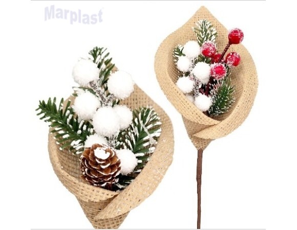 NATAL PICK NATALINOS RAFIA AZEVINHOS BRANCO 21CM
