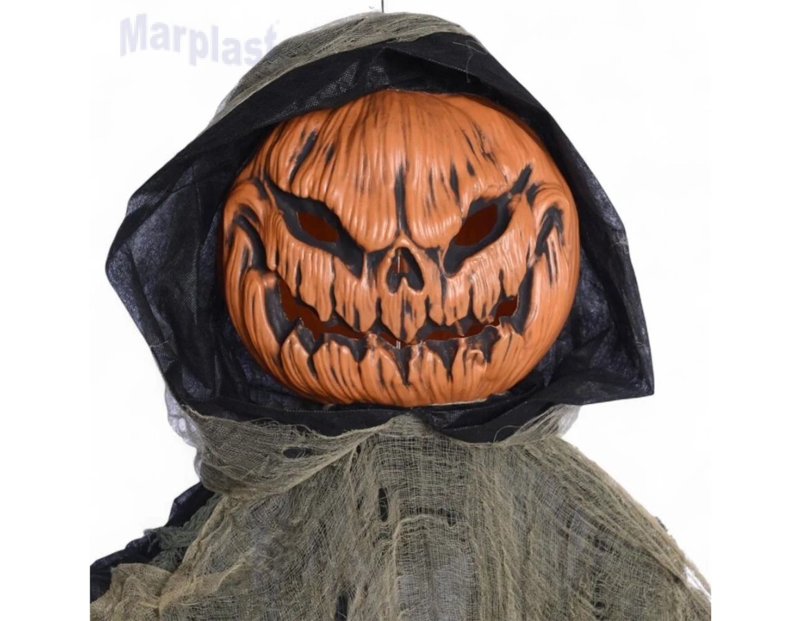 Boneco Abóbora Marc - A Estrela das Festas! Descrição do Produto: Apresentamos o Boneco Abóbora Marc, uma figura imponente e vibrante que vai transformar qualquer evento em uma celebração memorável! Com som e luz, Marc é ideal para criar uma atmosfera encantadora durante as festas, especialmente no Halloween