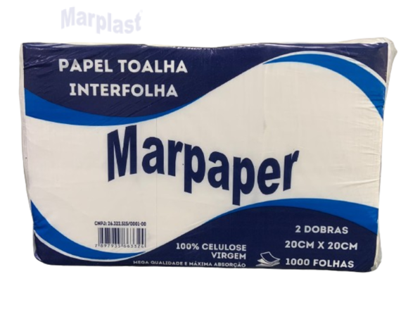 Papel Toalha Interfolha Duas Dobras 20X20 MARPAPER C/1000 FOLHAS.