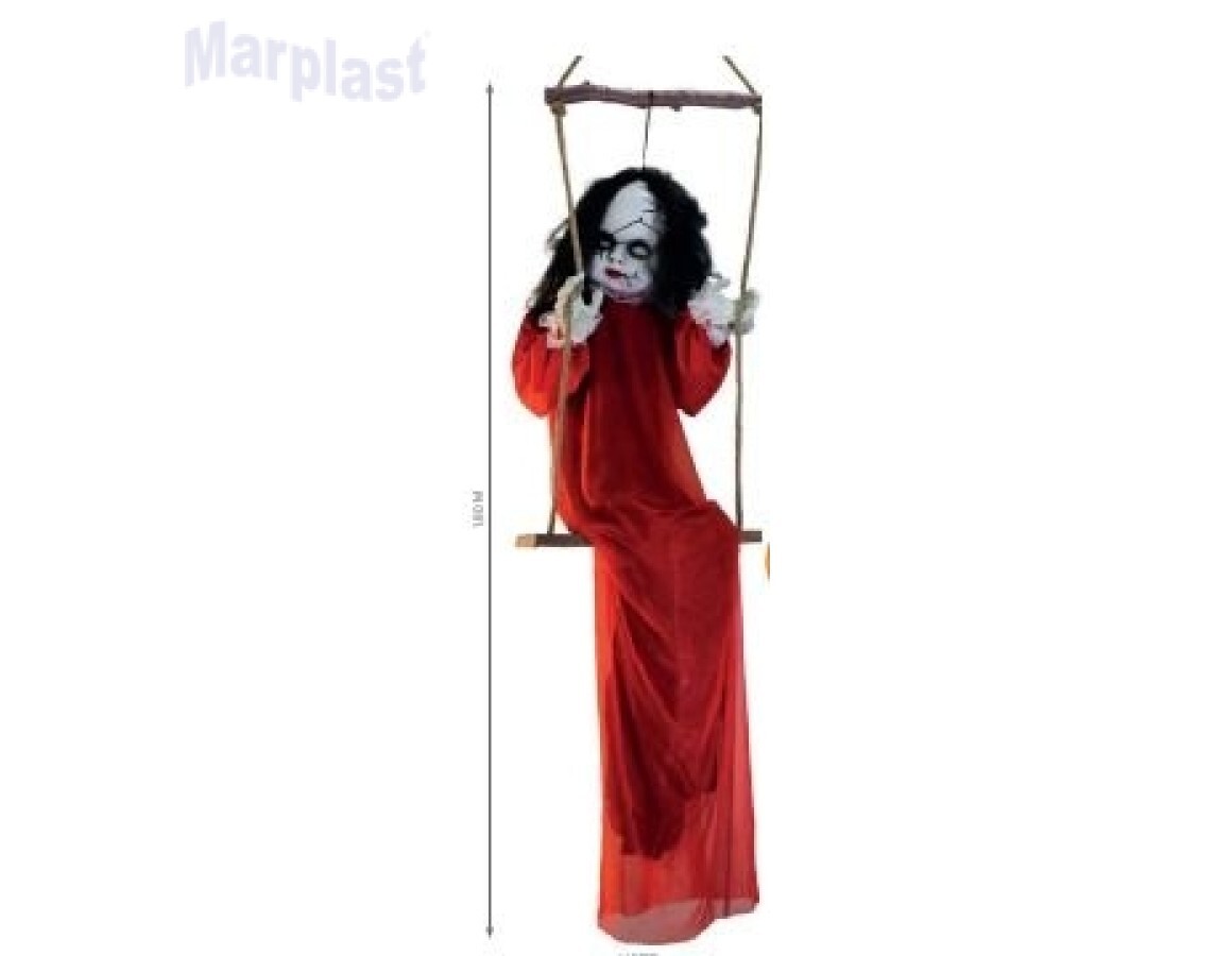 Transforme seu Halloween em uma festa assustadoramente divertida com a Boneca no Balanço! Com 1,80 metros de altura, ela possui um design macabro e detalhes realistas, perfeita para assustar e encantar seus convidados.