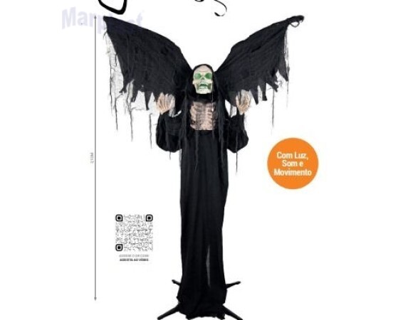 HALLOWEEN CAVEIRA COM ASAS 2,10MT COM LUZ SOM E MOVIMENTO