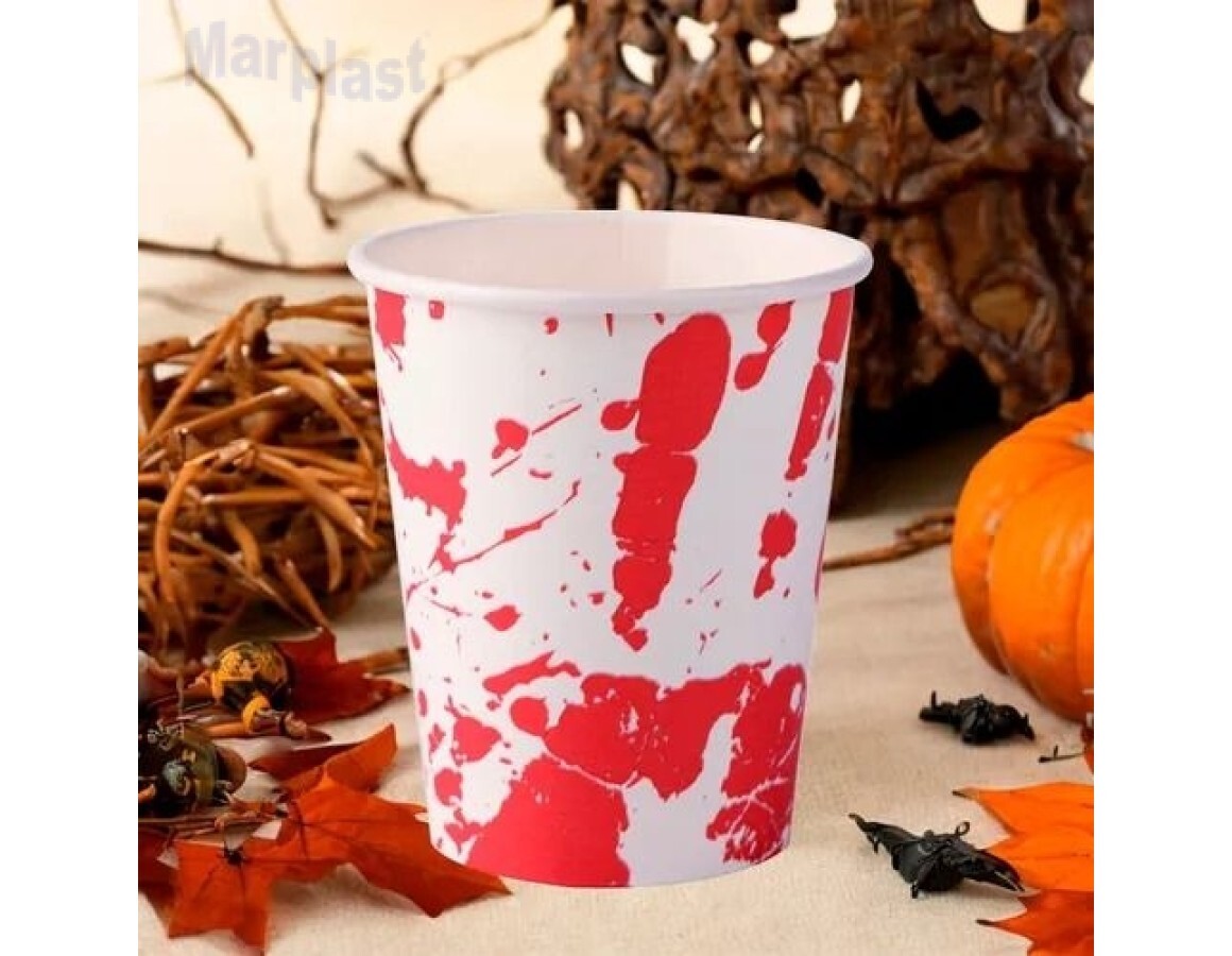 Adicione um toque assustador e estiloso à sua festa com o Copo de Papel Halloween Mãos de Sangue – 270ml!