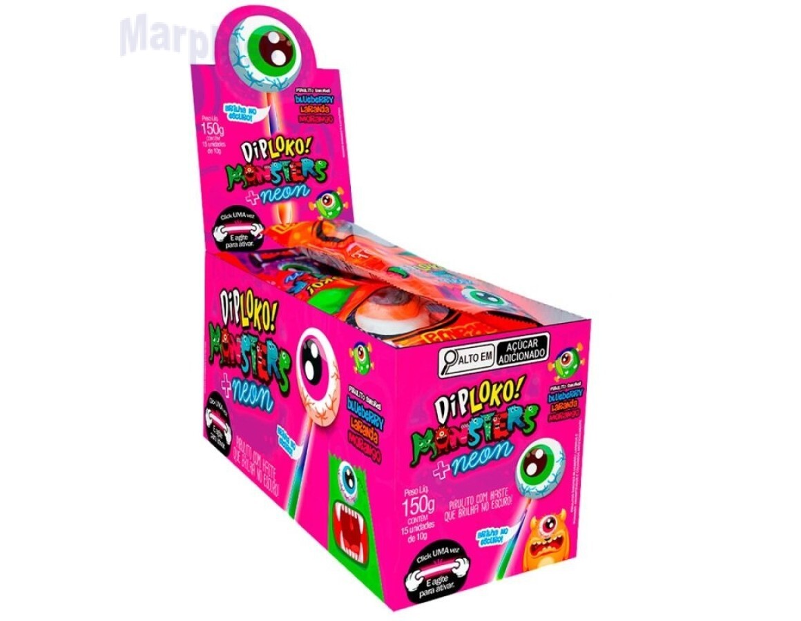 HALLOWEEN PIRULITO DIPLOKO MONSTER OLHO NEON COM 15 UNIDADES
