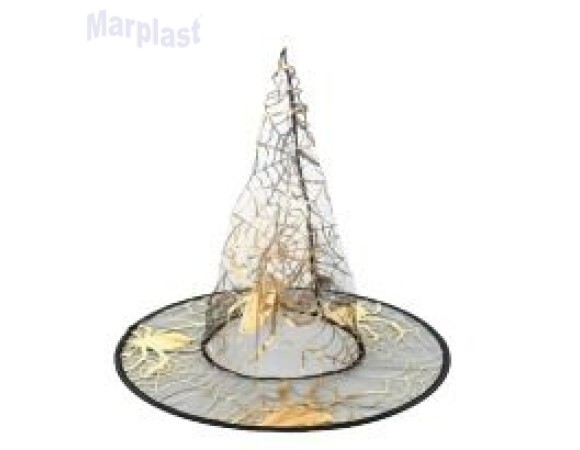 HALLOWEEN CHAPEU BRUXA TEIA OURO 37X34CM