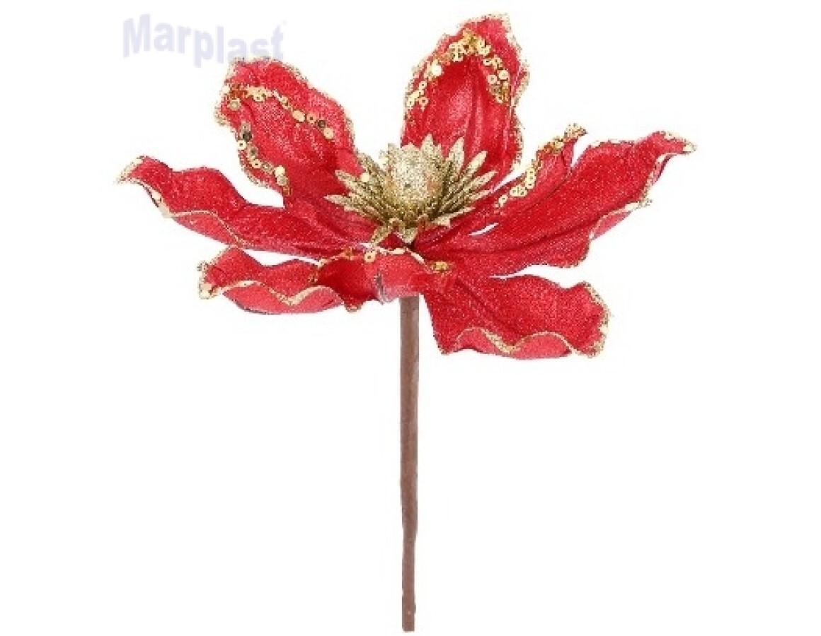 NATAL PICK NATALINOS C/ GLITTER DOURADO FLOR VERMELHO 19CM