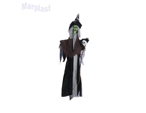 Muita diversão e susto no Halloween com essa bruxa! Quando ligada, os olhos da bruxa e da caveira acendem e piscam e a bruxa emite sons assustadores!