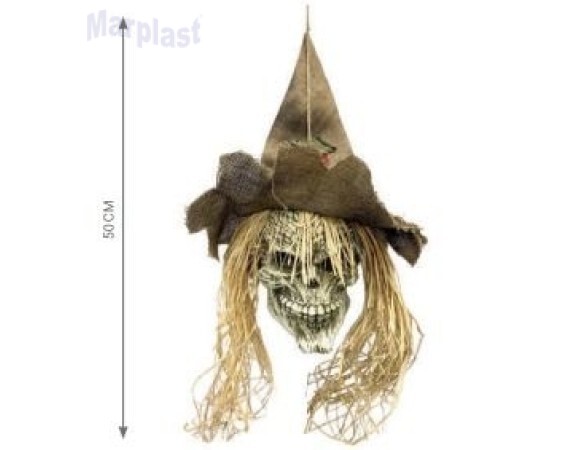 HALLOWEEN CABEÇA ESPANTALHO OLHOS DE FOGO COM LUZ E SOM