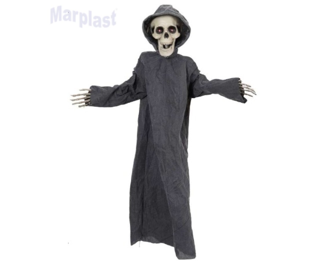 A Caveira Halloween com Som e Luz proporciona um toque macabro e divertido para sua festa. Com 1,45 metros de altura, esse item é perfeito para enfeitar ambientes e assustar seus convidados. Além disso, conta com luzes, som e movimento, deixando a decoração ainda mais realista.