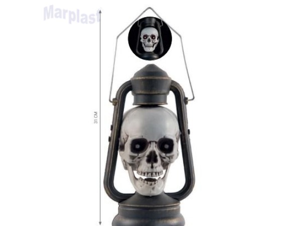 HALLOWEEN LAMPIAO CAVEIRA COM LUZ E SOM 31CM