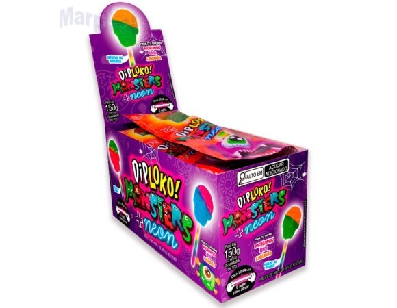 HALLOWEEN PIRULITO DIPLOKO MONSTER CAVEIRA NEON COM 15 UNIDADES